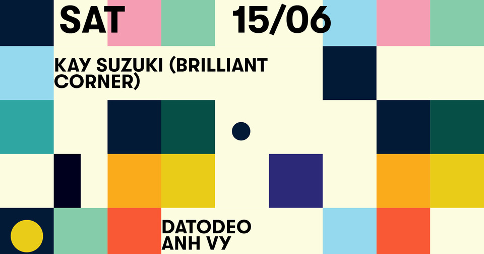 On the bill is an all-star lineup of residents Datodeo and Anh Vy with their strange stuff built for dancing. _ Nhà sản xuất, người giám tuyển, người sáng lập hãng Time Capsule Sounds tại Vương Quốc Anh, Kay Suzuki chưa bao giờ khiến sàn nhảy thờ ơ với những lựa chọn không thể đoán trước của mình, một sự va chạm nguyên tử của năng lượng truyền vào funk/jazz với màu sắc nhạc điện tử mà bạn chưa từng trải nghiệm bao giờ …