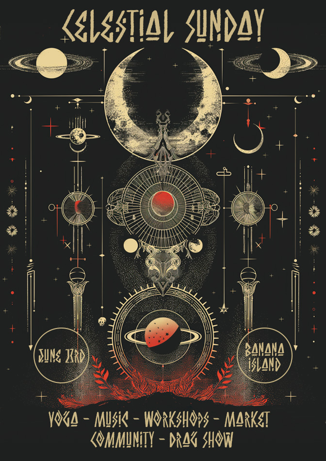 Expect a day filled with extraordinary experiences. Wander through our lively market, enjoy captivating live performances, and let the sounds of our curated music take you on a mystical journey. Complementing this are serene yoga sessions and creative workshops to nourish your body and soul. All of this, makes for a perfect Sunday.
