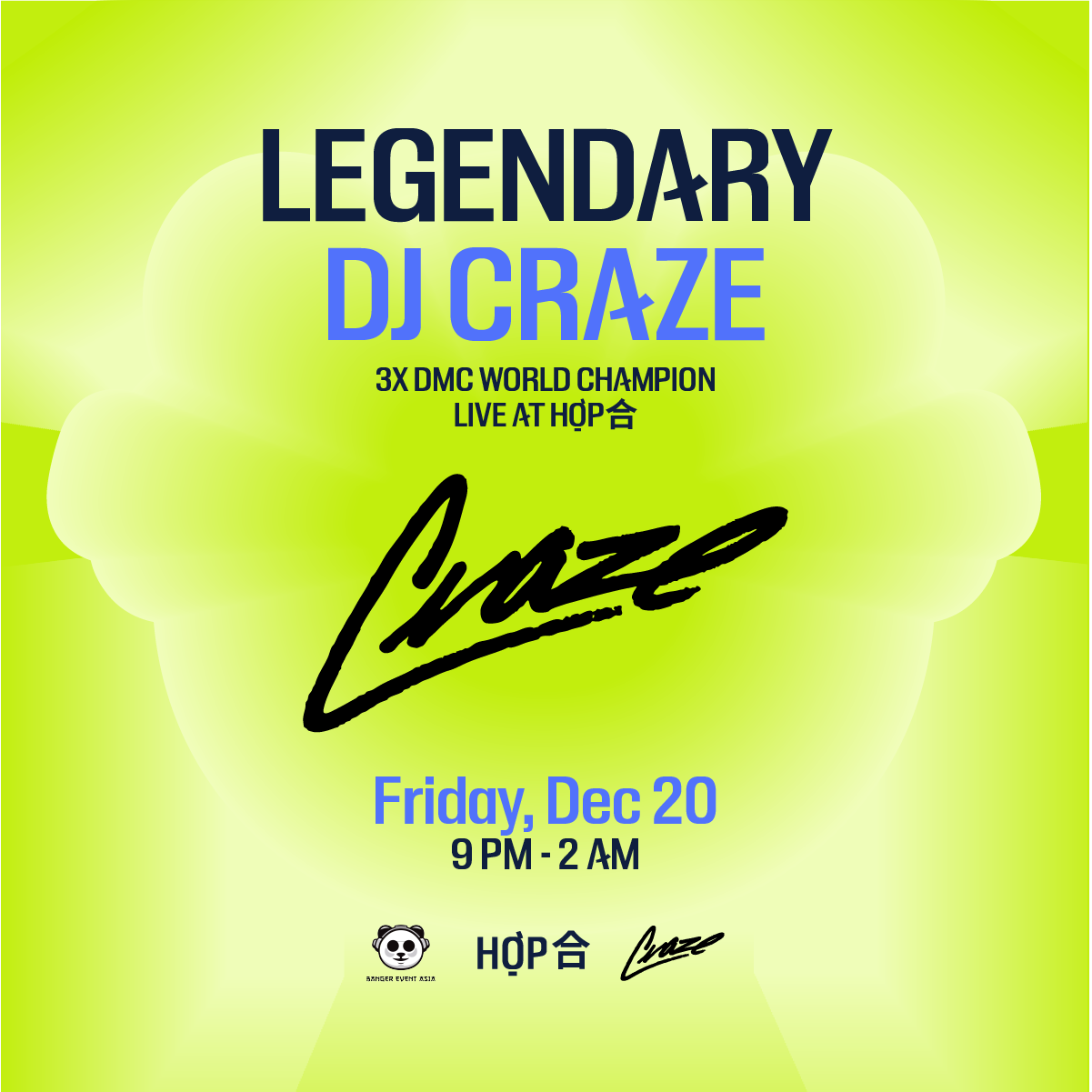 Get ready for an unforgettable experience as we bring you the legendary DJ CRAZE, headlining the night with his unmatched skills and high-energy beats. A Nicaraguan-American DJ and record producer, DJ Craze is renowned for his mastery of hip hop, Miami bass, trap, breakbeat, dubstep, and drum and bass. He is also the only solo DJ in history to win the DMC World DJ Championships three times in a row—a true icon of turntablism and a force on the global music scene.