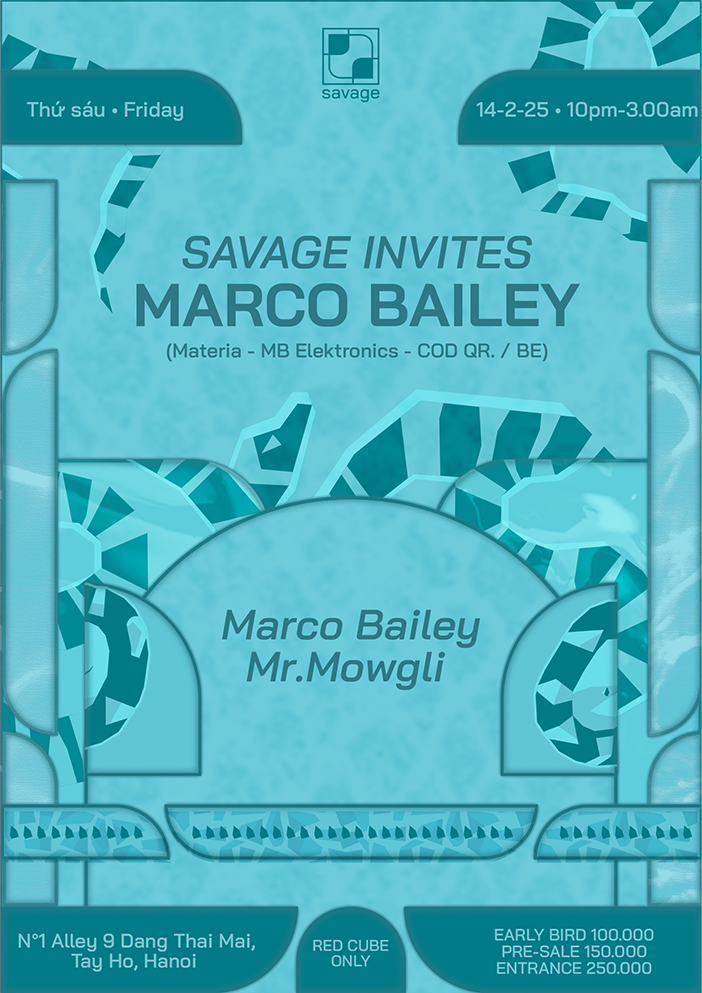DJ và producer người Bỉ Marco Bailey đã đi trên hành trình nhạc điện tử hơn ba thập kỉ vừa qua. Nổi tiếng với những lựa chọn đầy năng lượng và trải nghiệm sâu lắng trên sàn nhảy, anh đã nhanh chóng tìm được sự công nhận quốc tế trên từng sân khấu mới. Trong suốt sự nghiệp, các hãng nhạc của Marco Bailey như Materia, MB Elektronics, Elektronic Zoo Sounds, và Fundaments Ltd. đã là nền tảng của nhiều nghệ sĩ để khám phá những chân trời mới của nhạc dance. Tới Red Cube đêm thứ 6, Marco Bailey sẽ dẫn lối cho một đêm rave đầy năng lượng đột phá, đồng hành với tay nhạc Bangkok Mr.Mowgli.