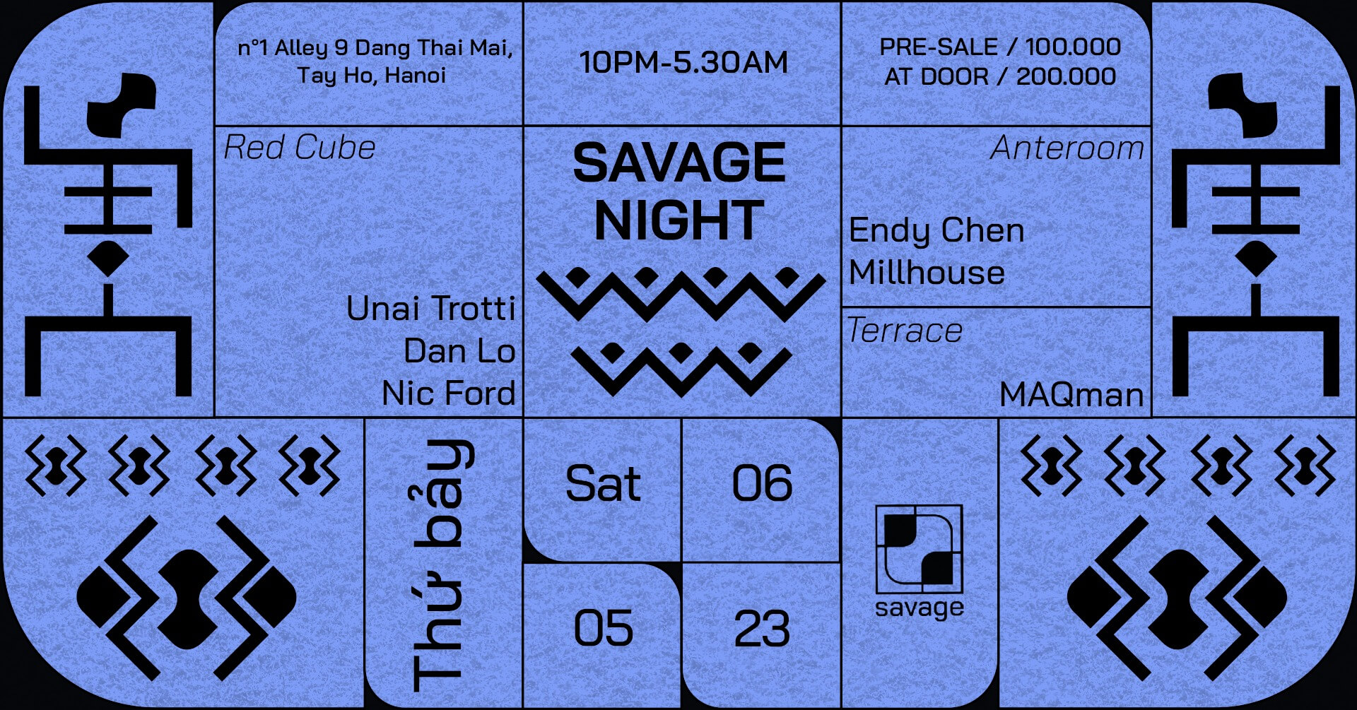 Mở đầu một mùa hè nóng cháy sẽ là một lineup lớn tới căn biệt thự lần này. Savage sẽ mang đến dàn DJ ở Việt Nam và quốc tế: Millhouse, Endy Chen, Nic Ford, Unai Trotti, Dan Lo, và MAQman.