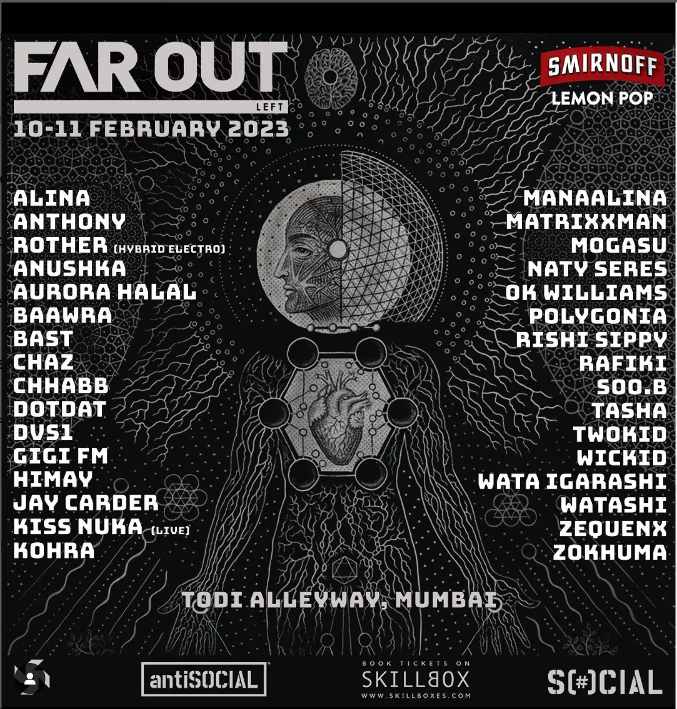 Far Out Left portal opens once more on the 10th & 11th February, 2023 at the Todi Alleyway in Mumbai. Brace yourselves for a 2-day exhilarating electronic music festival that flouts genre-norms & enraptures you with mind-bending music from pedigreed international and Indian DJs & producers.