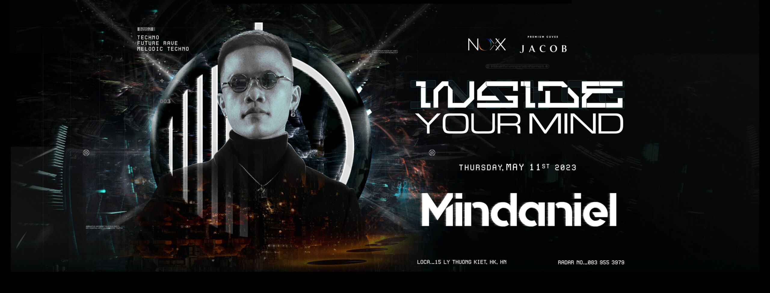 Lần đầu tiên, những âm hưởng của Techno và Melodic Techno sẽ được vang lên trong không gian của NOXX CITI, bởi host MINDANIEL.