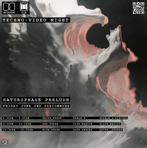 Immerse yourself in the techno vibrations of a future simulation, as Fable X presents "Saturophage Prelude" @Decommune on June 2nd from 8 PM-12 AM. Join us for an electrifying evening submerged with pulsating rhythms, woven intricately by our talented DJ line-up: