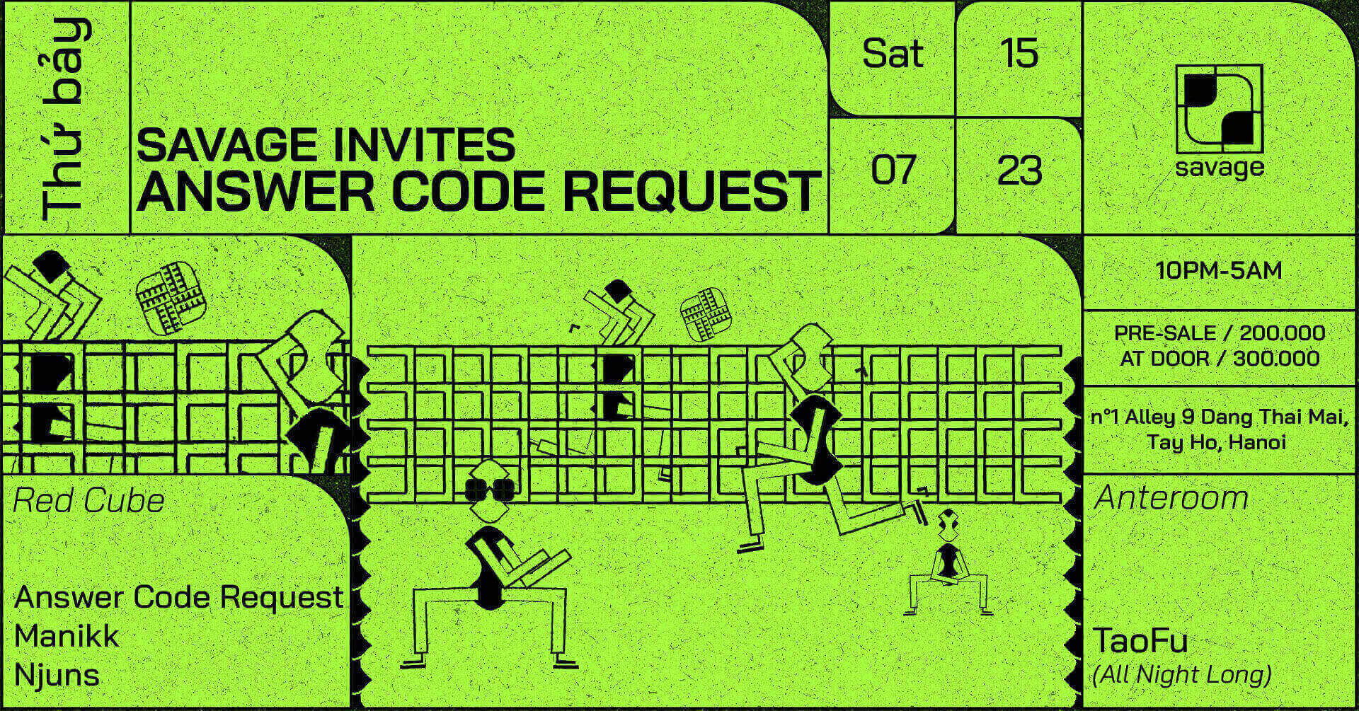[Line-Up] Answer Code Request (Ostgut Ton, DE) Manikk (Savage, VN) TaoFu (Atipik / The Observatory, VN) Njuns (Equation, VN)