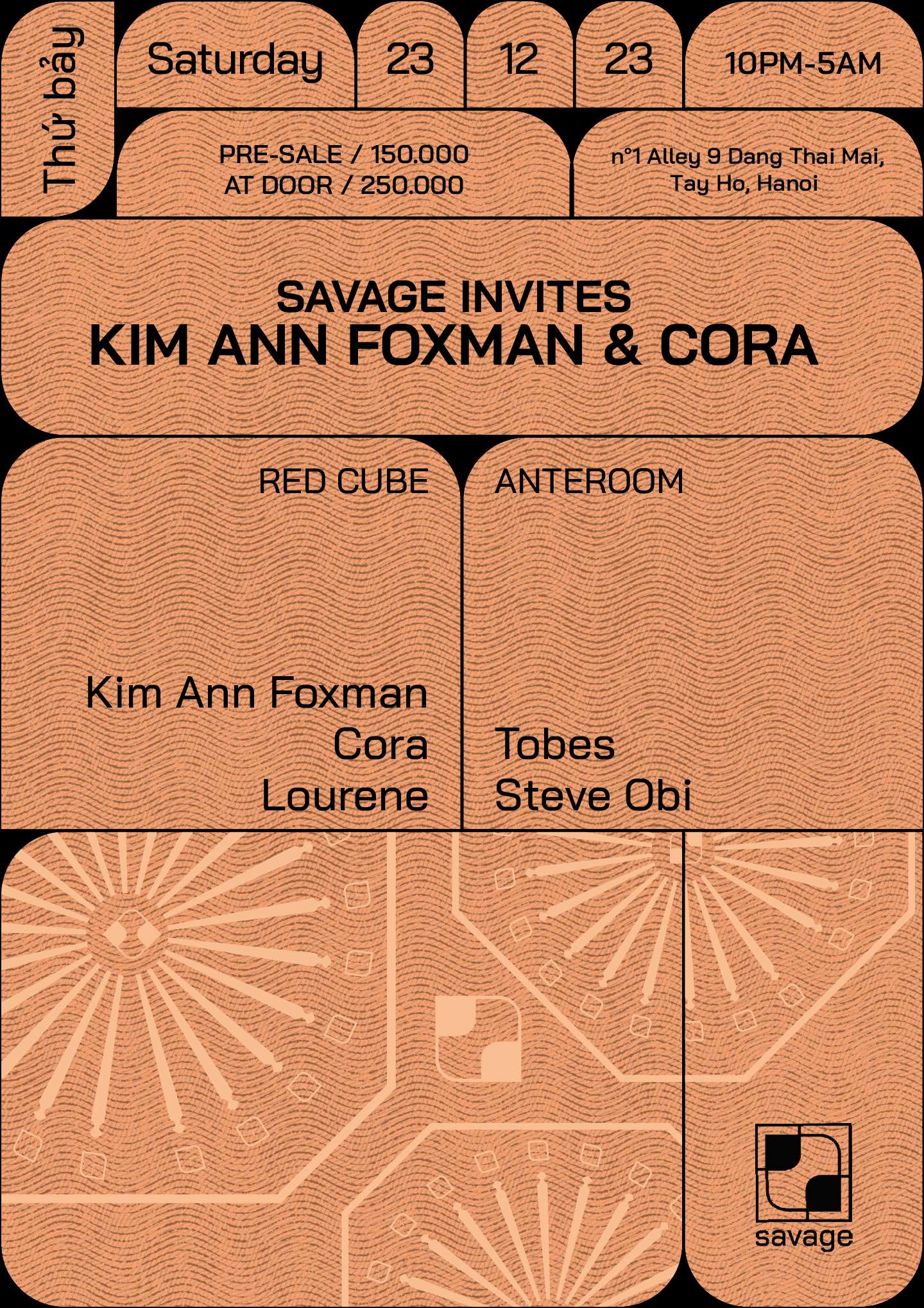 Kim Ann Foxman và Cora sẽ trở lại Savage, mang văn hoá dance đặc trưng của hai đầu thế giới tới hoà nhịp cùng với Tobes, Steve Obi và Lourene trên lineup.